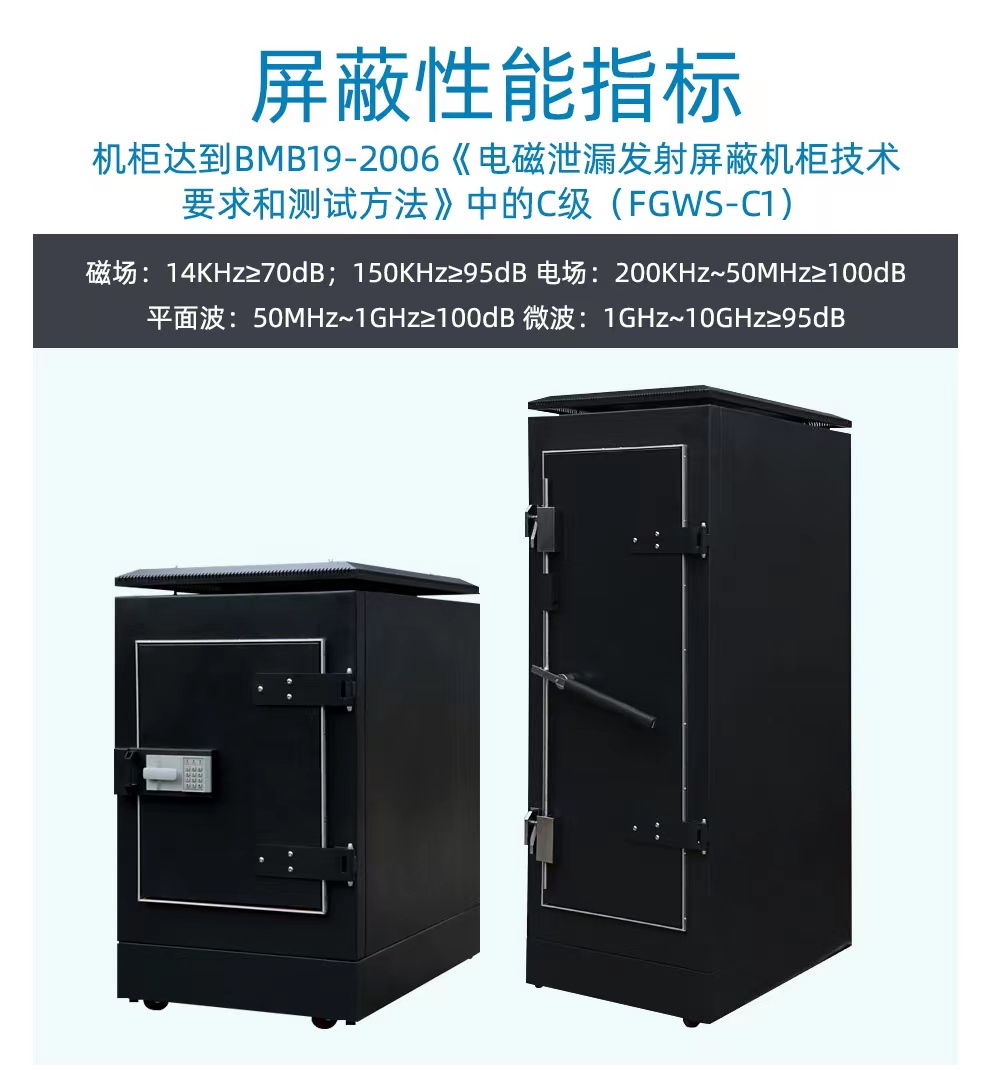 电磁屏蔽机柜最常用来保护服务器和网络设备,防止电磁干扰及通过电磁辐射的方式泄漏涉密信息。 随着电子技术不断发展,电磁干扰噪声、辐射,直接影响电子计算机、音响设备、电视技术、无线电通讯、航天、航空技术的测量仪器的正常工作,使测试出现偏差,工作失灵及仪器遭受破坏,更为严重的 可能通过电磁辐射的方式泄漏机要信息。 为了有效地对电子产品和系统工程进行宽围的精测量及电 子信息的保护,有效防止通过电磁辐射的方式泄漏涉密信息,